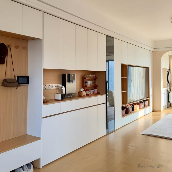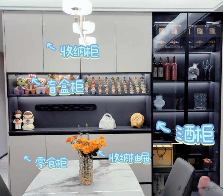 当初思着作念一个怒放式酒柜,入住在里面放上适应的酒水,既能遮挡,看着也好意思不雅。