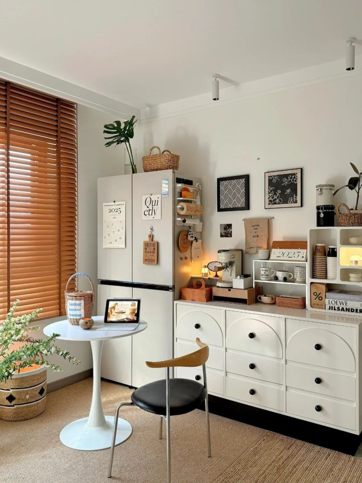 如果厨房门口没位置,那就放餐厅,尤其是心爱囤零食、饮料的家庭,放餐厅险些太未必了!