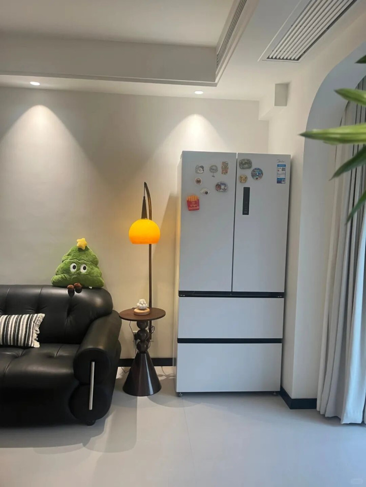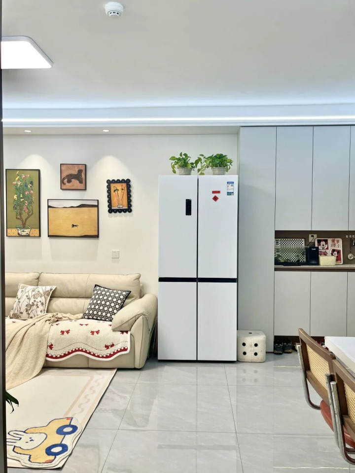 雪柜可以放在沙发侧边,网友@满满哟 家,厨房太小,雪柜放在客厅沙发边上,嗅觉这便是一个很合适的位置。
