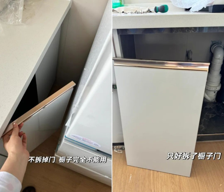 我家买雪柜健忘了厨房小这个事,雪柜放厨房里面影响到橱柜开门了,后头,没目的只可把门拆了,就这样拼集着用吧,亦然莫得目的的目的了。
