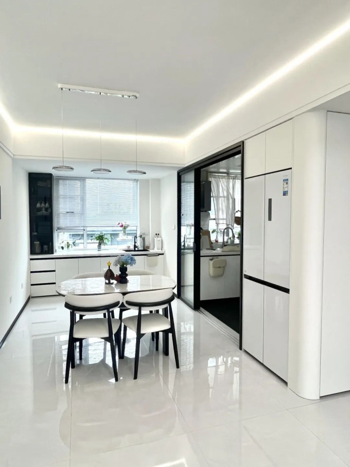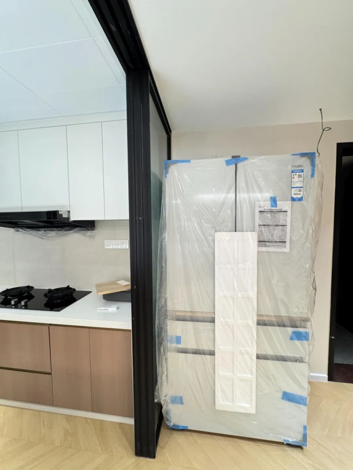 网友@可达鸭啊喔 家亦然如斯,把厨房门洞双方墙体拆了,把雪柜塞进去与门王人平,获得一个丝滑的雪柜位。