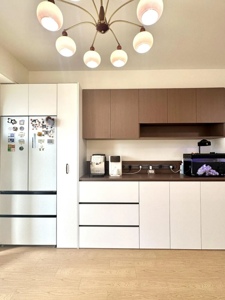 厨房更盛大了,雪柜放在厨房门口,作念饭回身就能拿到雪柜里的食材,也毋庸再顾忌雪柜沾油污。