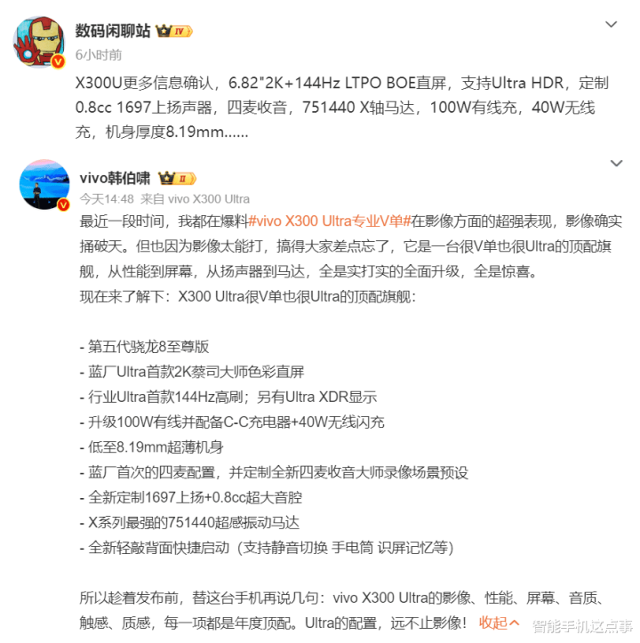 另一方面则是说vivo X300 Ultra照旧不是影像旗舰,而是万能旗舰,好多细节参数都照旧达到了一个很好的发达。