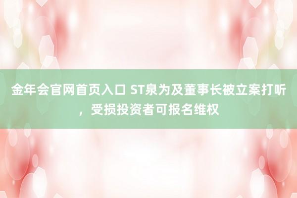 金年会官网首页入口 ST泉为及董事长被立案打听,受损投资者可报名维权