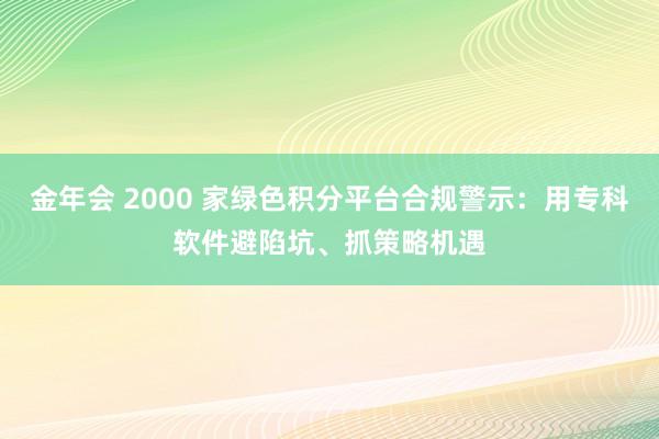 金年会 2000 家绿色积分平台合规警示:用专科软件避陷坑、抓策略机遇