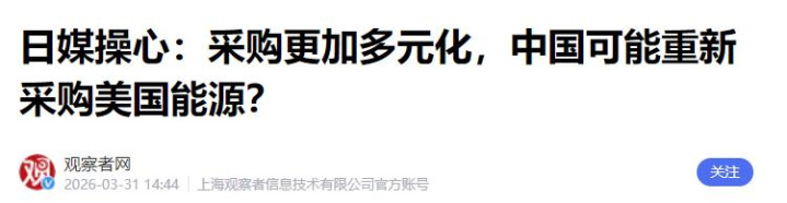 不雅察者网:日媒记挂:采购愈增加元化,中国可能从头采购好意思国动力?