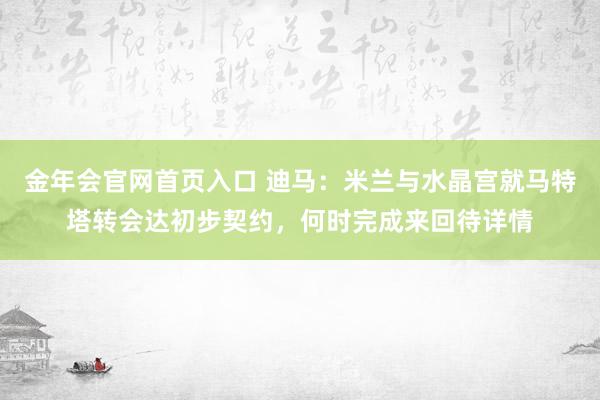 金年会官网首页入口 迪马:米兰与水晶宫就马特塔转会达初步契约,何时完成来回待详情