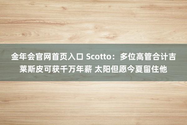 金年会官网首页入口 Scotto:多位高管合计吉莱斯皮可获千万年薪 太阳但愿今夏留住他