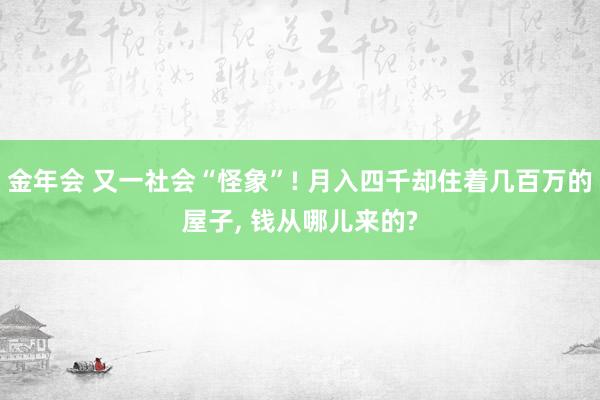 金年会 又一社会“怪象”! 月入四千却住着几百万的屋子, 钱从哪儿来的?