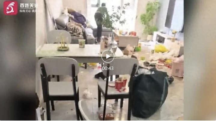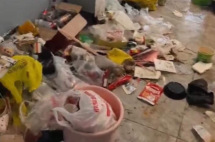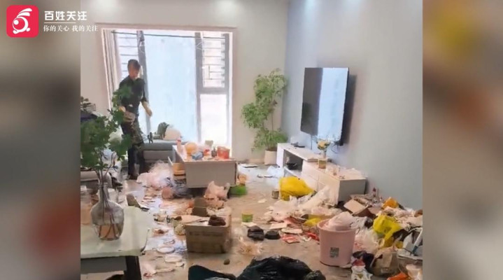 现场视频线路,种种垃圾堆满房间,外卖餐盒汗漫扬弃在座椅上,环境脏乱不胜。