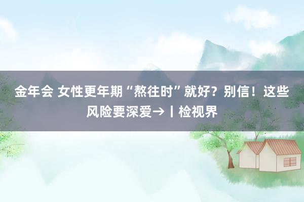 金年会 女性更年期“熬往时”就好?别信!这些风险要深爱→丨检视界