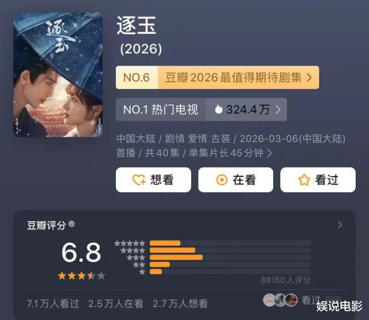 《逐玉》的6.8分是多方博弈后的感性总结,既不外高也不算屈身,基本反应了它“制作细密但脚本拉胯”的真实水准。