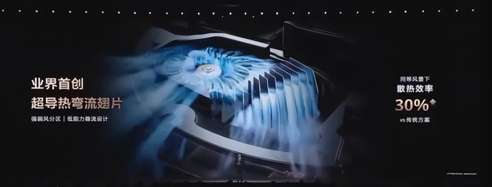 官方数听说,同等噪声下,风量擢升了约60%,况兼还用了超导热弯流翅片,在指甲盖大小的空间里,把散热面积擢升了20倍。这套组合拳打下来,散热后果径直拉高了一个端倪。