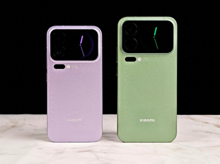 两款小米手机 · 展示紫、绿两款小米手机的后置外不雅